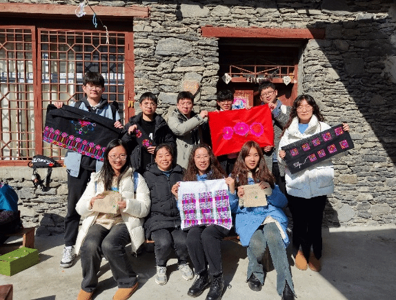 1月13日,实践队来到汶川博物馆参观学习,了解羌族历史发展与文化传承,调研特色产业与“非遗赋能乡村振兴”建设情况。队员们前往“西羌第一村”羌锋村,走访当地村民,了解生活状况与民风民俗;采访羌绣非遗传承人,动手体验羌绣技艺,感受非遗文化魅力;与村支书交流,了解乡村发展状况;最后,羌锋村与我院签订“共建社会实践基地协议”,鼓励更多青年学子关注美丽乡村建设和非遗传承。